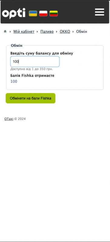 За допомогою даного функціоналу можна обмінювати баланс водія на Fishka бали які в свою чергу можна обмінювати на паливо АЗС ОККО та в інших партнерів Fishka таких як: